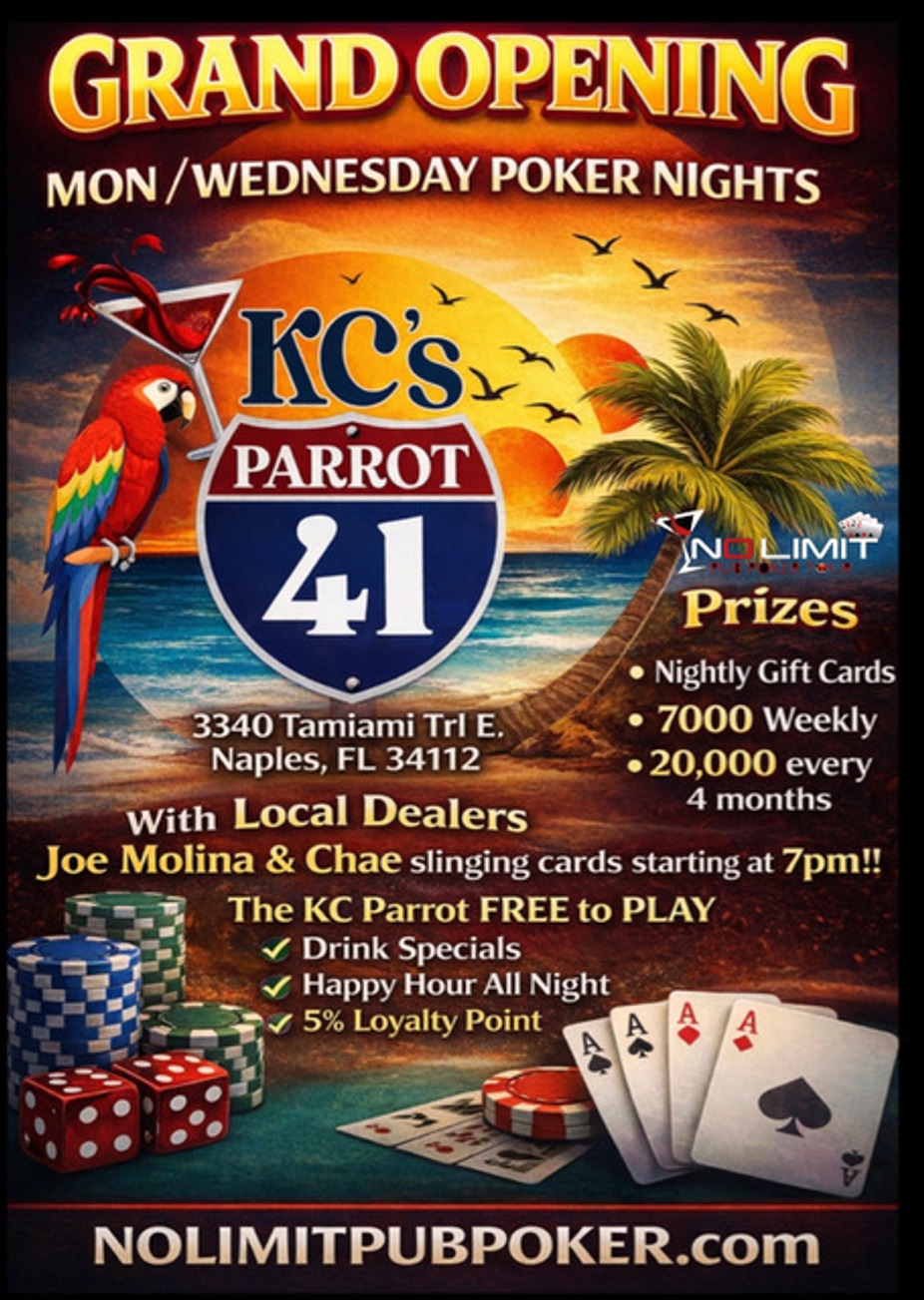 Located just down the road from the original Parrot Bar and Grill, the new KC’s Parrot 41 Bar and Grill strives to carry on the tradition started back in 2011, which is good food and fun for locals, seasonal citizens and tourists alike!